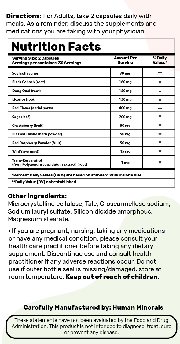 This unique formula supports woman health in menopause in which estrogen levels decline by providing herbs acting as phytoestrogens to support the changes that occurs in this period.